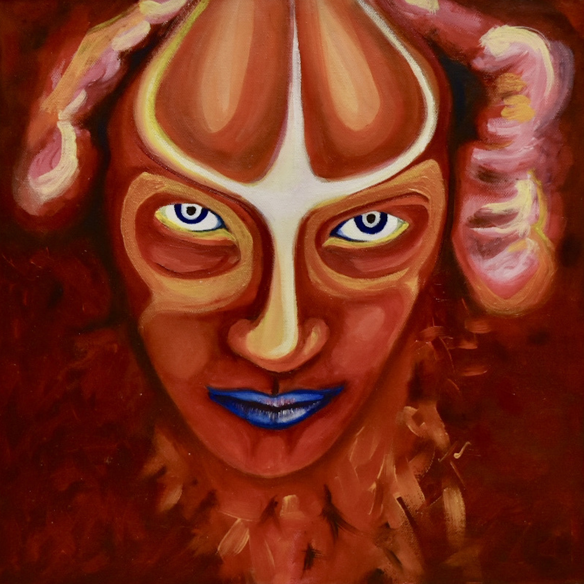 Self-portrait is an installation composed of 11 canvases, executed in oil on canvas with a format of 40 × 40 cm and 11 stories. It represents my journey of Love: Earth, Water, Air and Fire, Moon, Venus, Mercury, Sun, Mars, Jupiter and Saturn.
